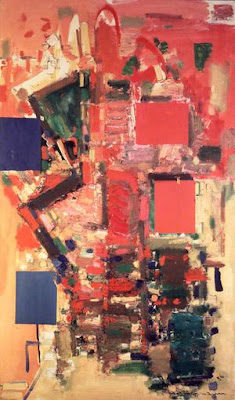 It's Hans Hofmann's "Towering Spaciousness" (1966), and I turned to my friend and said, "That's my painting. That's the kind of painting I needed to see." I promptly misremembered the title of the painting as "Towering Magnificence" and was not able to find an image of it for years and years. I'm glad to have it back in my visual repertoire--for its energy, its movement, its gamut of blues, its having given my heart a powerful touchstone when I needed one.